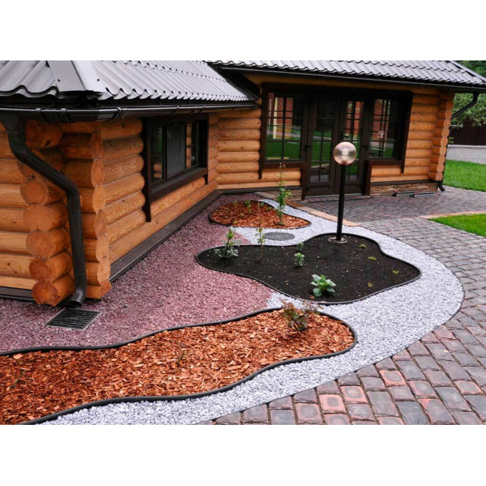 Гибкость делает возможным применение бордюра при обрамлении сложных геометрических форм, в том числе малых радиусов.