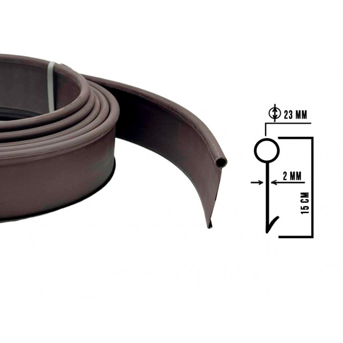 Бордюр длиной 10 метров с трубкой по верхней части.Толщина бордюра 2 мм, трубка высотой 23 мм. Полная высота бордюра с трубкой 15 см.