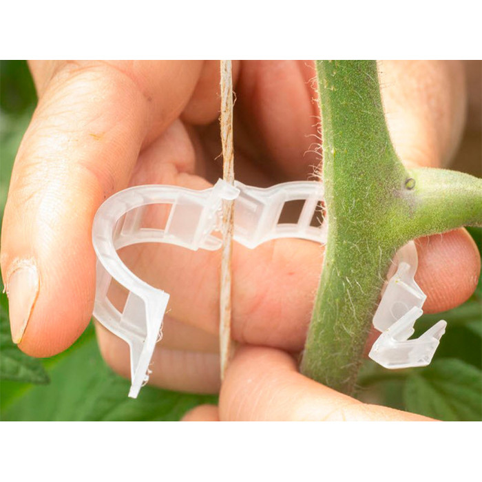 Клипсы не травмируют растения, обеспечивают свободных ход стебля при росте, что положительно сказывается на урожае.