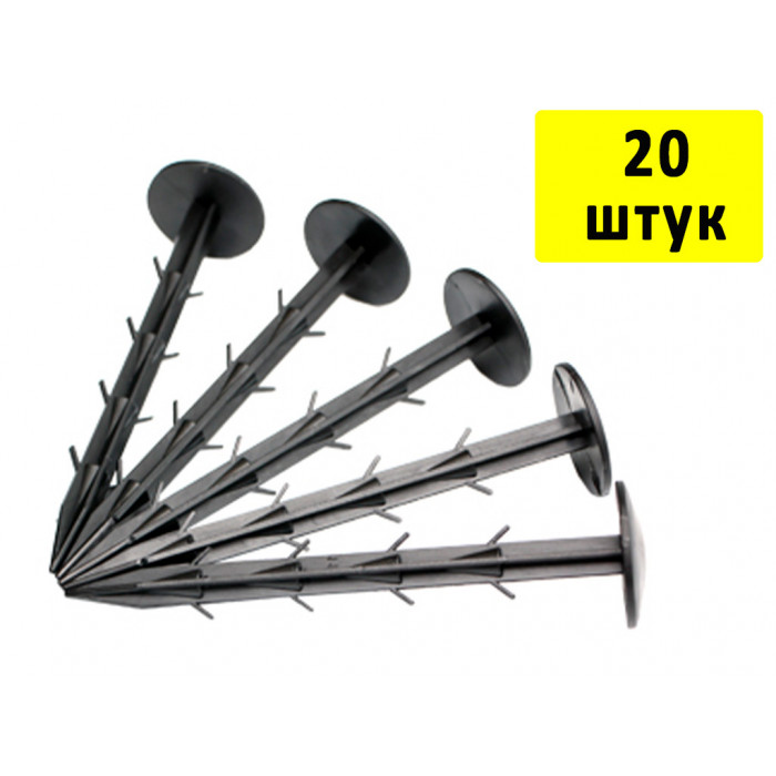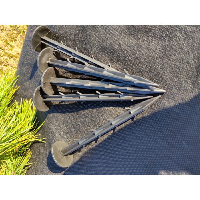 Колышек для спанбонда, 15 см (20 шт) Гвоздь крепёжный для фиксации укрывного материала и геотекстиля , 20 шт, длина 150 мм. Диаметр шляпки 36мм. Колышек предназначен для крепления агроткани, геотекстиля и других укрывных материалов к земле. Колышки садовые изготовлены из 100% полимера, благодаря чему прослужит Вам долгое время. Колышек легко пробивает ткань любой плотности, и за счёт большой площади шляпки, надёжно закрепляет укрывной материал.