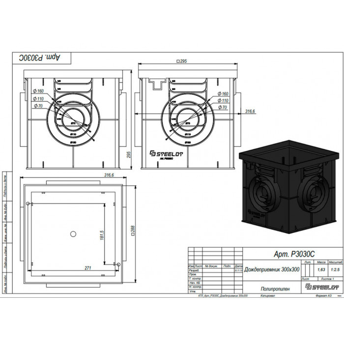 Дождеприемник пластиковый SteeStart 300х300 (P3030С)