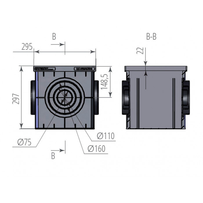 Применяется для частных домовладений, пешеходных и парковых зон, приёма воды с открытых площадок и кровельных водосточных труб. Возможна схема установки один на другой для наращивания высоты. Может комплектоваться различными видами решеток или крышкой.
