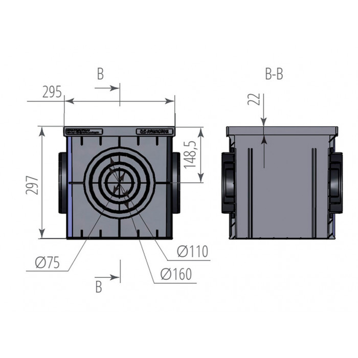 Применяется для частных домовладений, пешеходных и парковых зон, приёма воды с открытых площадок и кровельных водосточных труб. Возможна схема установки один на другой для наращивания высоты. Может комплектоваться различными видами решеток или крышкой.