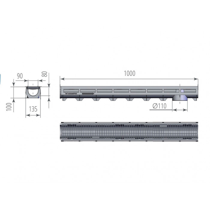 Каналы серии «Aqua-Top» поставляются в сборе с пластиковыми и оцинкованными решетками. Это самая экономичная серия пластиковых каналов. Не требуют специальных фиксаторов решетки. Рекомендуются к установке в пешеходных, парковых зонах, частных домовладениях, на въездах в частный гараж легкового транспорта. Есть два исполнения данного канала, с пластиковой и штампованной оцинкованной решеткой. Класс нагрузки А15.
