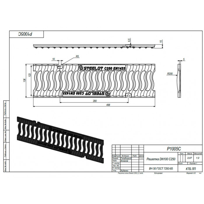 Класс нагрузки А15 В125, Длина 498 мм, Ширина 136 мм, Высота 15мм