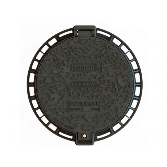 Люк чугунный круглый AQUASTOK Terra Islands 750 С250 Круглые чугунные люки AQUASTOK серии Terra Islands с классом нагрузки С250хорошо подходят для монтажа как с асфальтобетонным покрытием, так и смощенным покрытием.Преимущества: Болтовое крепление;  Подпружиненная защелка;   Эластичная прокладка   Уникальный дизайн Островов (Islands)Рекомендуются к применению в зонах со средней интенсивностью движения: городские дороги, парковые зоны, парковки автотранспорта. Люк чугунный круглый габарит 750мм, H100мм, вес 45 кгМатериал: высокопрочный чугун ВЧ50Соответствие стандартам: ГОСТ 3634, EN124Класс нагрузки С250Круглое инспекционное отверстие 600ммШарнирный механизм с фиксацией крышки люка в открытом положенииЗамок на нержавеющем крепеже М12Эластичная прокладкаМеханизм на основе упругой защелки