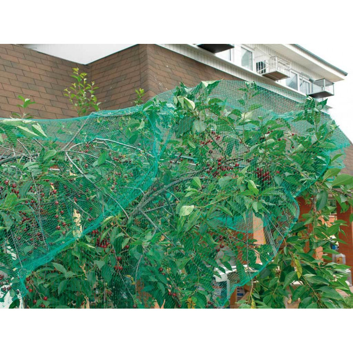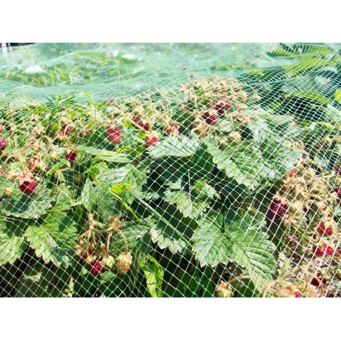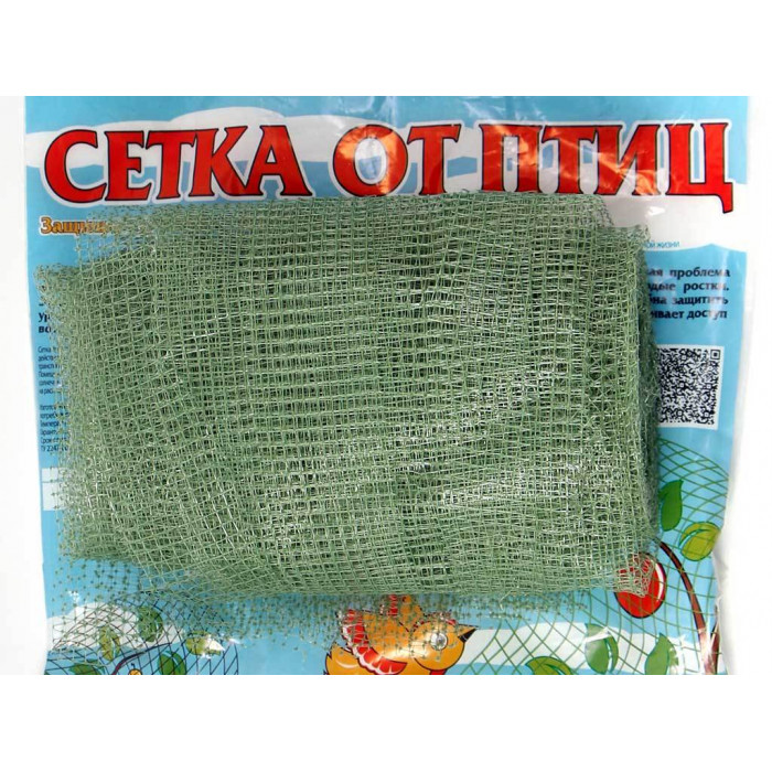 Материал представляет собой легкую сетку из полипропилена зеленого цвета. Размер ячейки небольшой – всего 6х6 мм, через него не сможет пролезть ни одна пташка. Защищает урожай плодов и ягод в период созревания, а также молодые всходы на грядках. Сеткой накрывают деревья, кустарники, гряды с дугами. Она не сминает молодые побеги, травмобезопасна для веток, хрупких кустарниковых культур. При необходимости сетку крепят к земле с помощью пластиковых колышков. На опоре фиксируют сетку при помощи пластиковых хомутов.