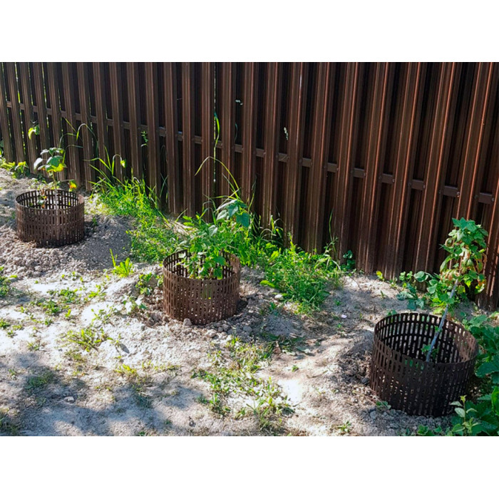 Защита ствола деревьев от триммера и газонокосилки, размер 34,5х20,5 см цвет коричневый, комплект 4 шт. Основное назначение защитно-декоративного ограждения, это защита ствола дерева, однако его так же применяют для защиты растения от грызунов и вредителей, и как опору для цветов и кустарников. Диметр одной соединённой секции 11 см. Защита имеет надёжные соединительные замки, благодаря которым возможно неограниченное кол-во соединений по длине и высоте. Для соединения необходимо вставить язычок замка в любую из ячеек. Диаметр соединённой секции можно регулировать как в меньшую сторону, переставляя замки в другие ячейки, так и в большую сторону, соединяя несколько секций защиты между собой. Срок годности не ограничен.