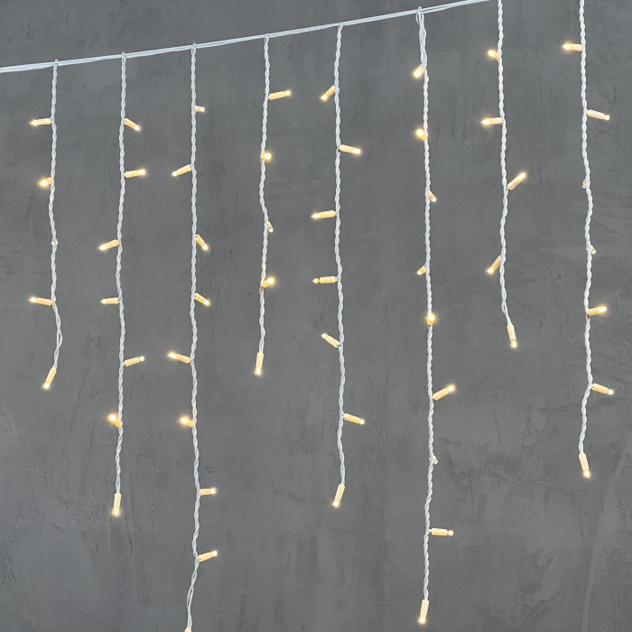 Гирлянда Бахрома 3,2 x 0,9 м Тепло-Белая 220В, 168 LED, Провод Белый Каучук, IP65
