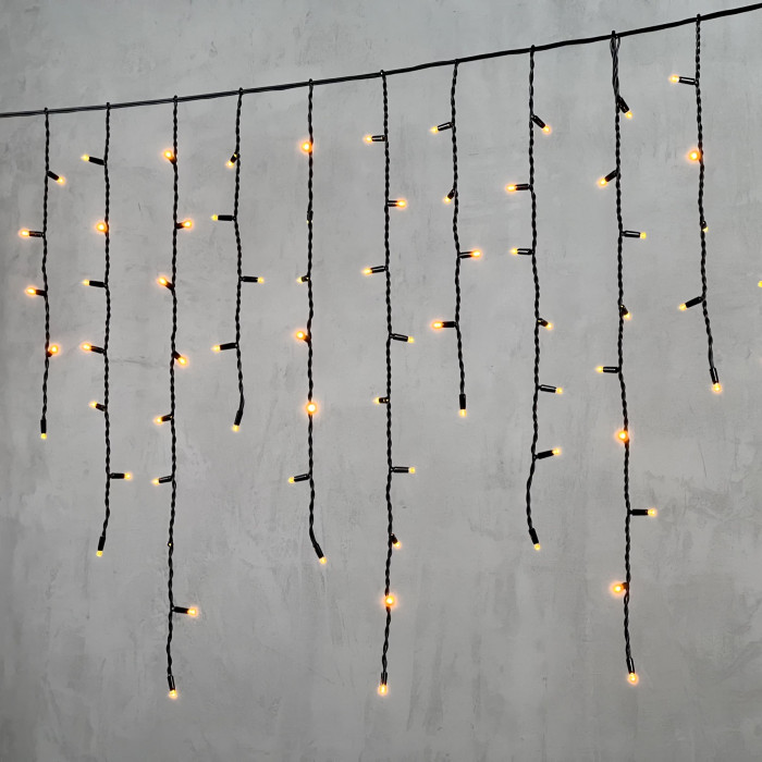 Гирлянда Бахрома 3,2 x 0,9 м Желтая, 168 LED, Провод Черный Каучук, IP65