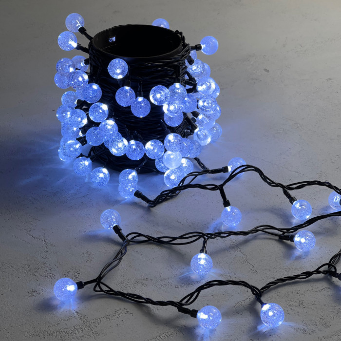 Гирлянда «Шарики» 10м Белая 220В, Диаметр Шарика 23мм, 100 LED, Провод Черный Каучук 2,3мм, IP54