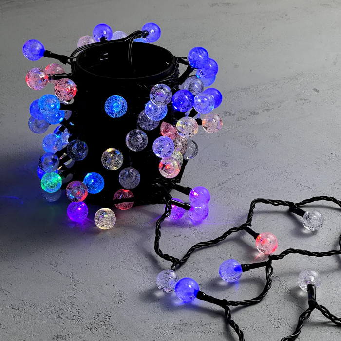 Гирлянда «Шарики» 10м Разноцветная 220В, Диаметр Шарика 23мм, 100 LED, Провод Черный Каучук 2,3мм, IP54
