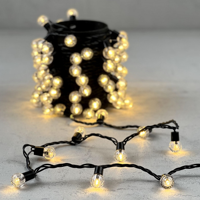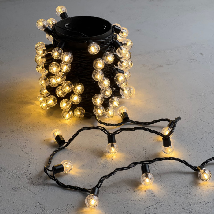 Гирлянда «Шарики» 10м Тепло-Белая 220В, Диаметр Шарика 23мм, 100 LED, Провод Черный Каучук 2,3мм, IP54