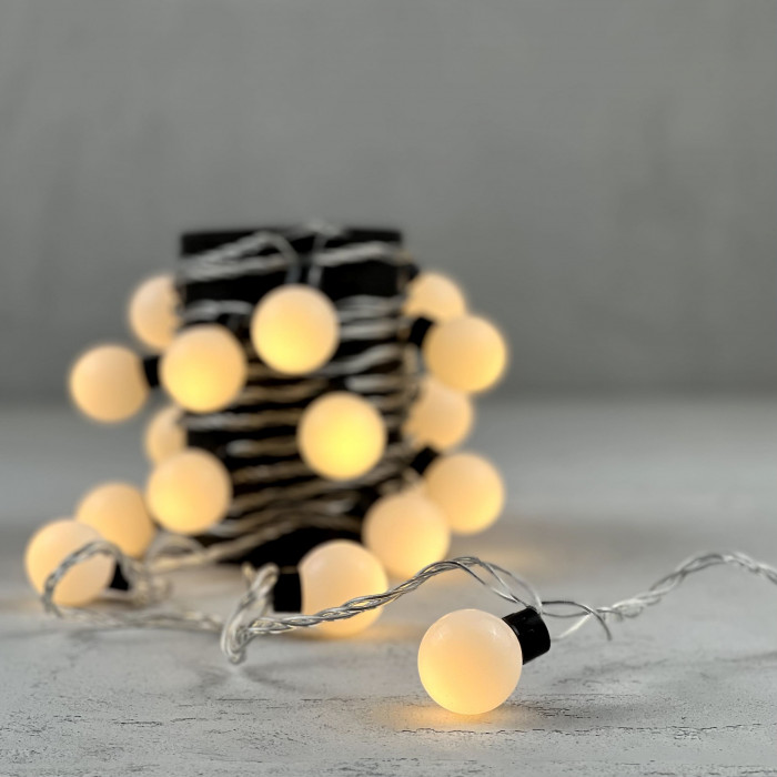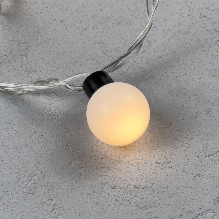 Гирлянда «Шарики» 5м Тепло-Белая 220В, Диаметр Шарика 40мм, 20 LED, Провод Прозрачный Силикон, IP65