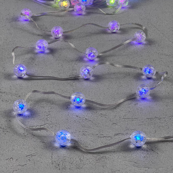 Гирлянда Шарики Смарт 10м Разноцветная с Управлением 5В, Диаметр Шарика 20мм, 100 LED, Провод Прозрачный ПВХ, IP44