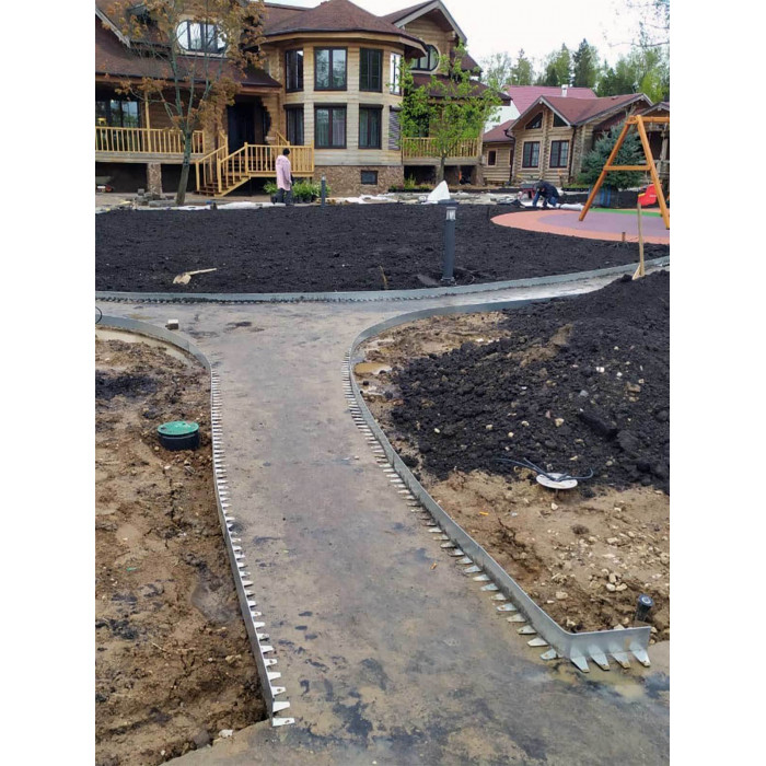 Толщина металла от 1,2 до 2 мм разрешает использовать бордюр при устройстве дорог с разными уровнями нагрузки.