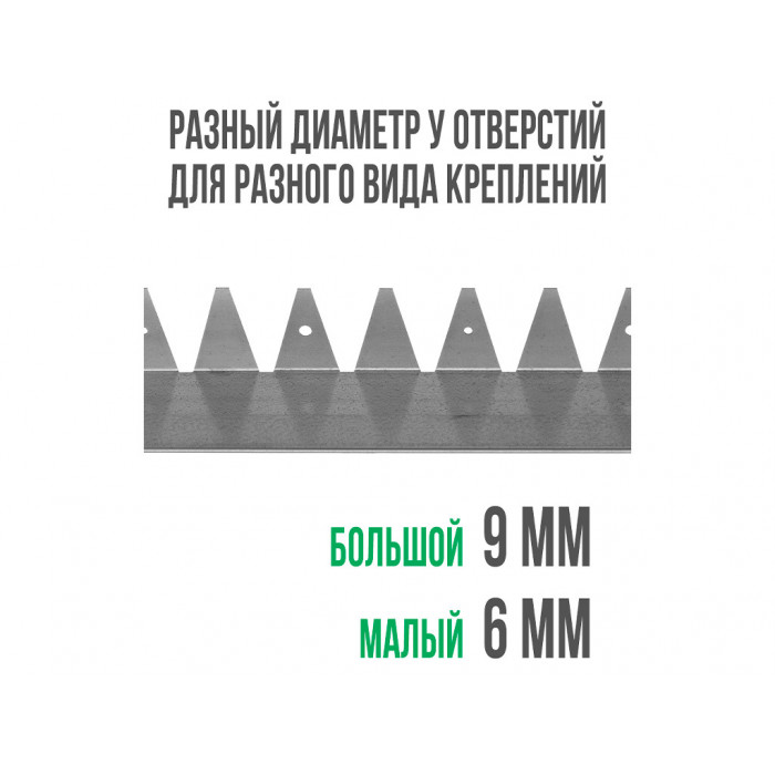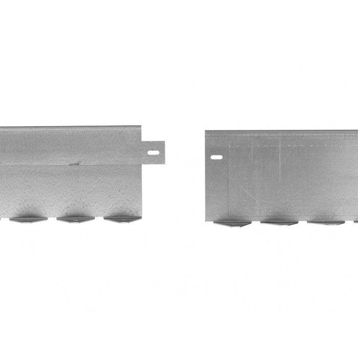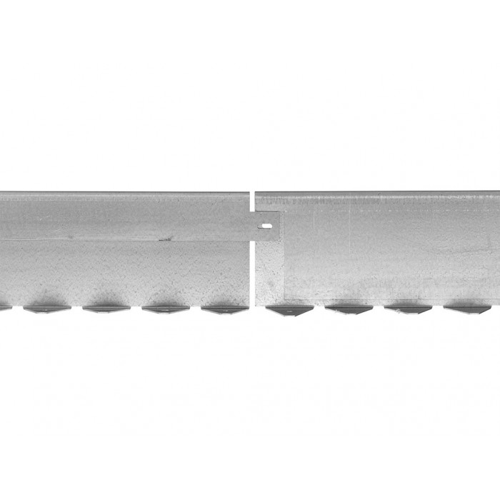 Толщина вертикальной стенки в верхней части 3 мм. Один бордюр длиной 120 см. Секции бордюра соединяются между собой вытяжными заклепками, заклепки в комплекте.