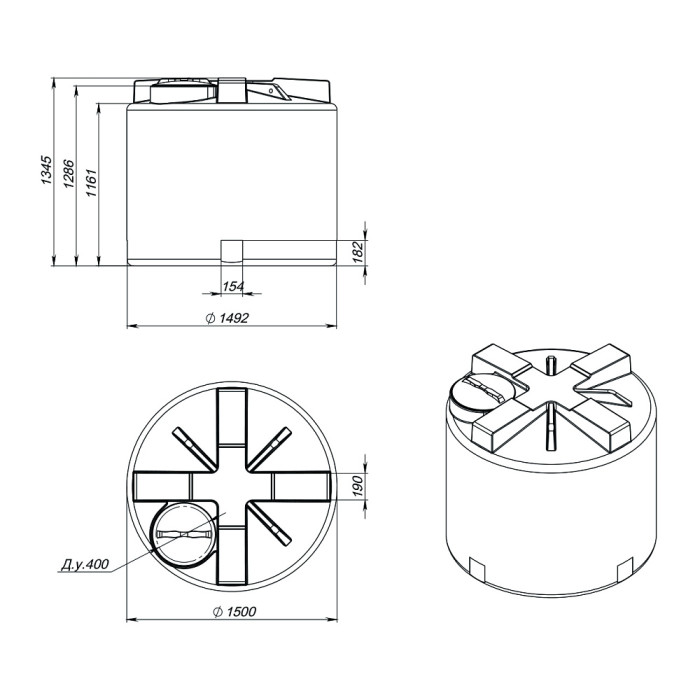 Крупногабаритная вертикальная бочка Т 2000л имеет фактический объем 2050 литров.