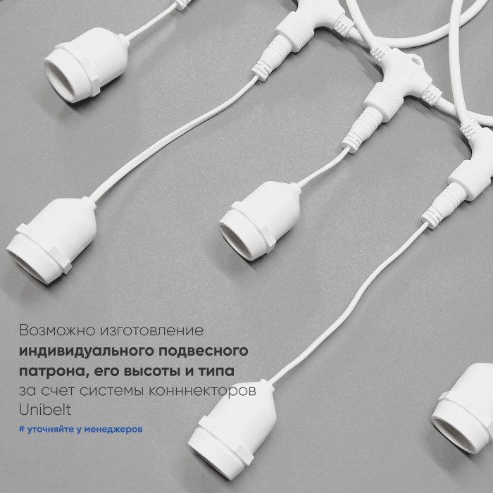 Белт-Лайт UNIBELT 10м, Провод Белый Каучук, Шаг 100 см, 10 Подвесных Патронов, IP65