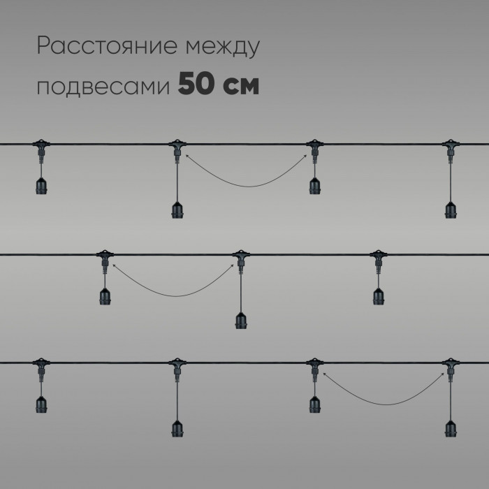 Белт-Лайт UNIBELT 5м, Провод Черный Каучук, Шаг 50 см, 10 Подвесных Патронов, IP65