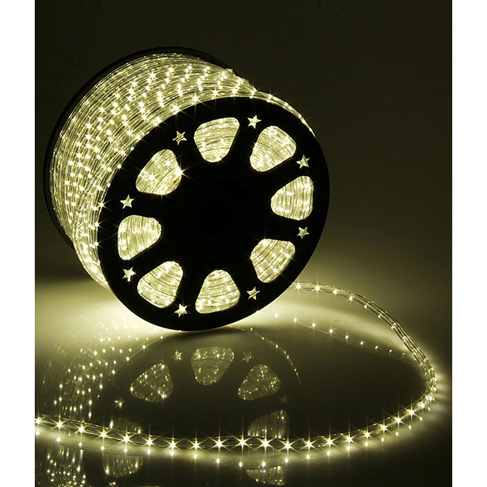 Светодиодный Дюралайт Ø13 мм Тепло-Белый 220В, 36 LED/м, Свечение 360°, IP65, Бухта 100м