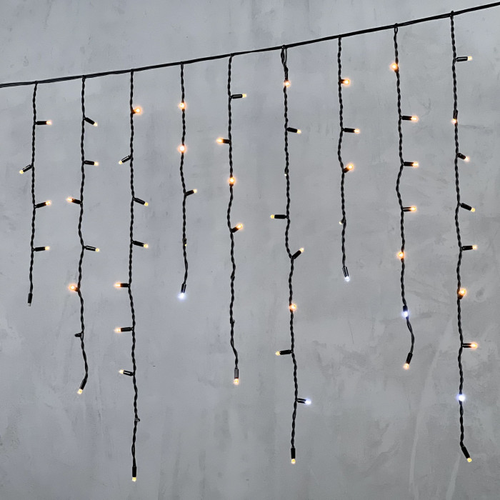 Гирлянда Бахрома 3,2 x 0,9 м Экстра Тепло-Белая с Мерцанием Белого Диода 220В, 168 LED, Провод Черный Каучук, IP65