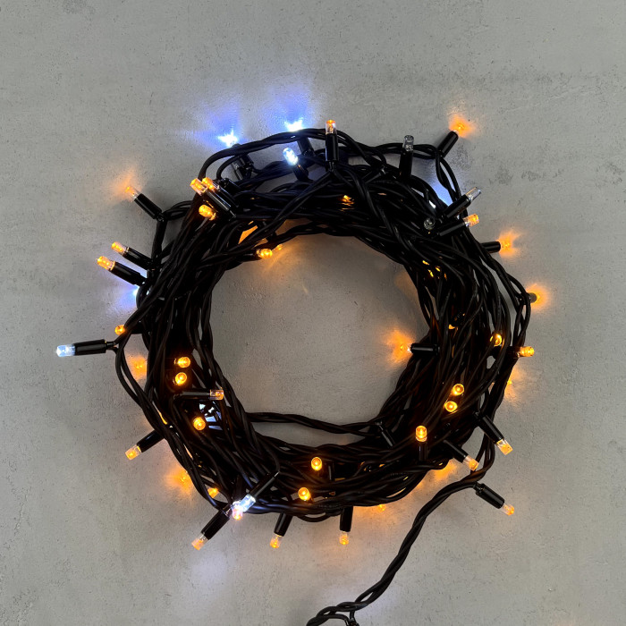 Гирлянда Нить 10м Желтая с Мерцанием Каждого Диода 220В, 75 LED, Провод Черный Каучук, IP65