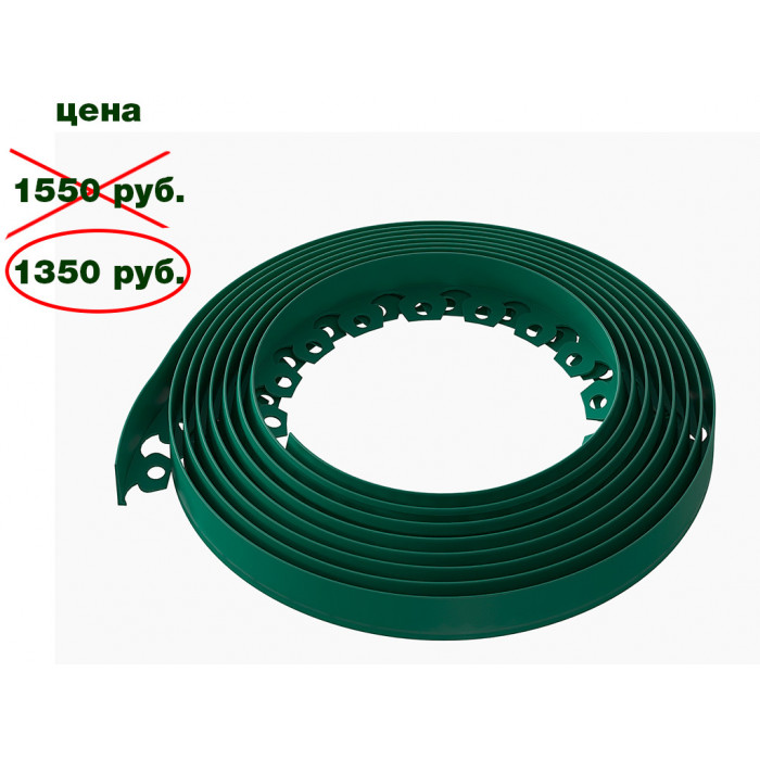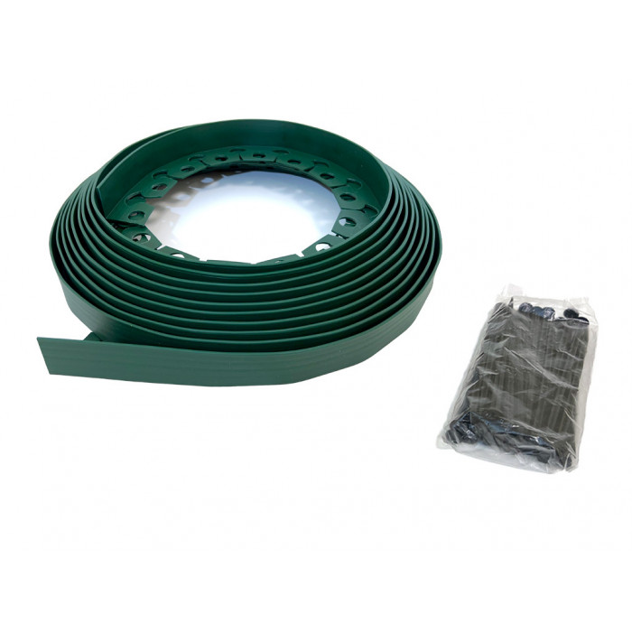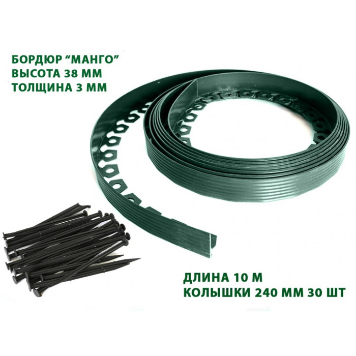 Садовый пластиковый бордюр ГеоПластБорд "Манго", высота 38 мм, 10 метров + 30 кольев, зелёный